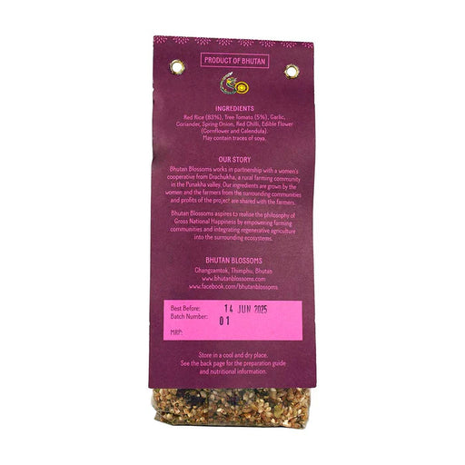 Druk MethoBlossoms Of Bhutan Ingredient: Tree Tomato Risotto Blended with Organic Flowers, Red rice and spices from Bhutan. (CornFlower) Net weight: 100gms O...