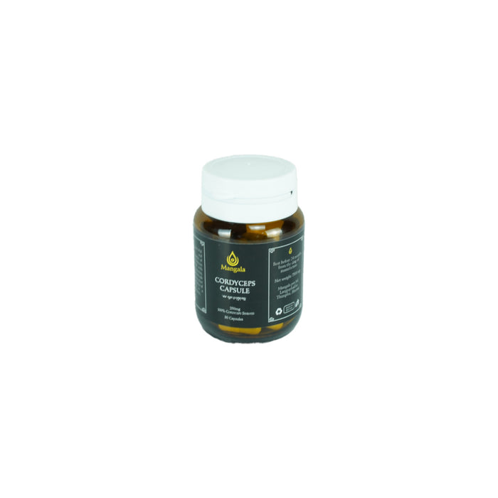 Unlock your potential with Mangala Cordyceps Capsules. This premium supplement features 250mg of 100% Cordyceps Sinensis per capsule, providing you with the natural power of this revered Himalayan fungus.